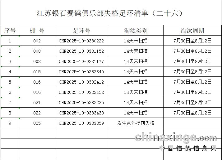 2025年江苏银石赛鸽俱乐部失格足环清单 (二十六)