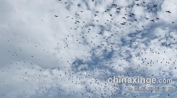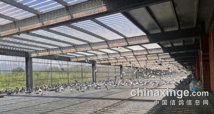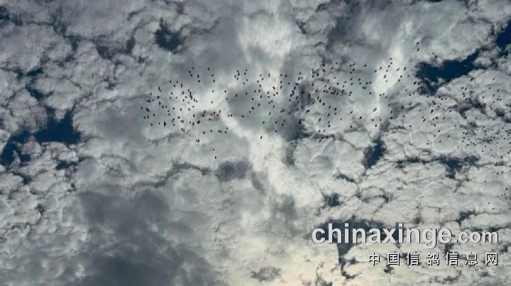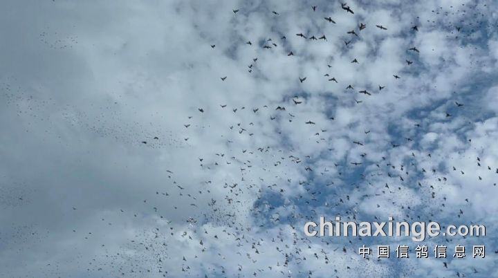 初秋清晨,陆翔公棚的赛鸽们集群盘旋