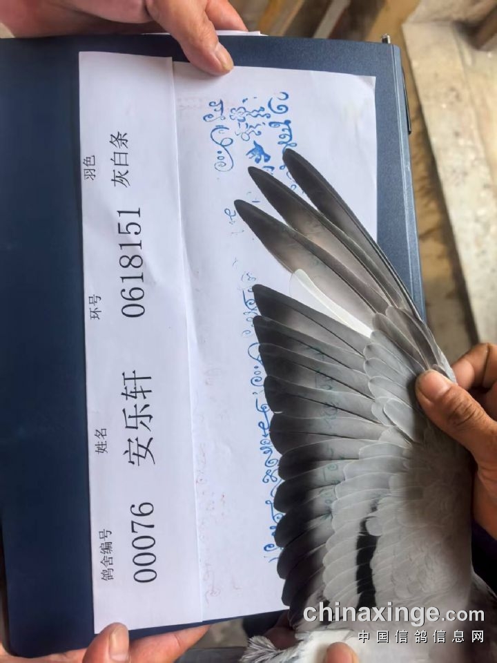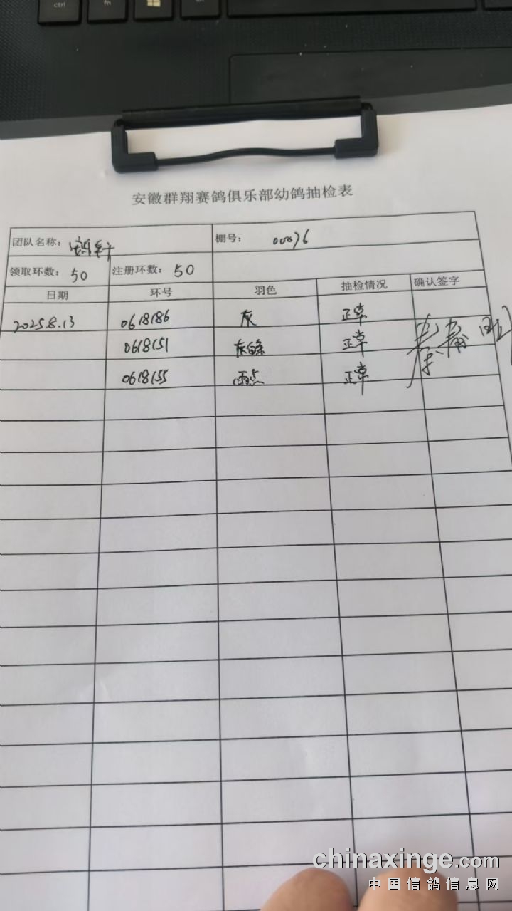 00076-安乐轩,拿环50枚,已注册50羽。今日抽检3羽,均合格。