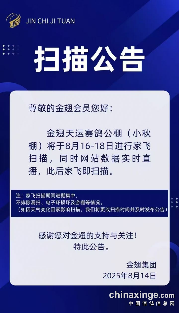 金翅天运(小秋棚)8月16-18日第二次家飞扫描公告