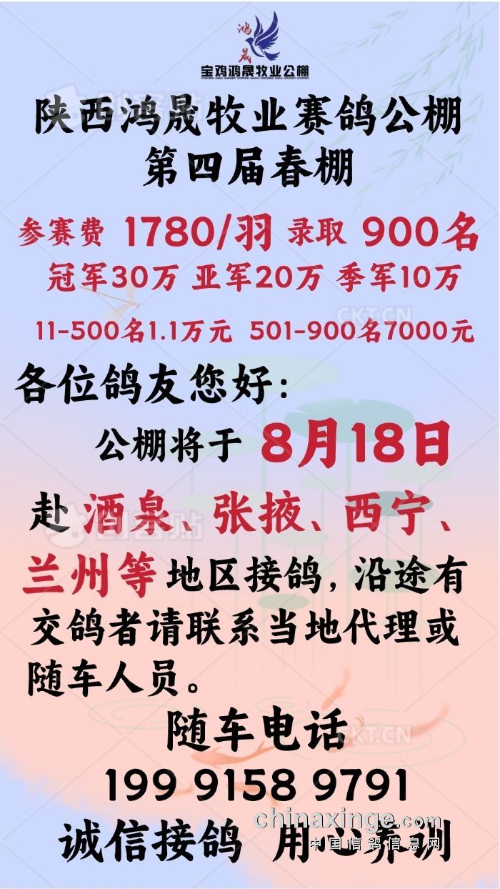 8月18日赴酒泉、张掖、西宁、兰州等地区接鸽公告