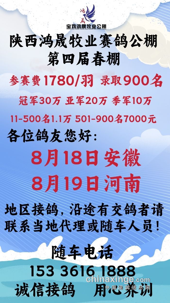 8月18日赴安徽、8月19日赴河南地区接鸽公告