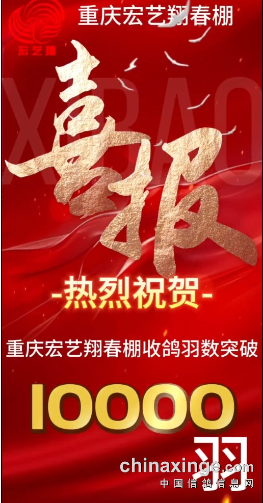 重庆宏艺翔收鸽突破10000羽,感谢各地鸽友的大力支持和信任 !