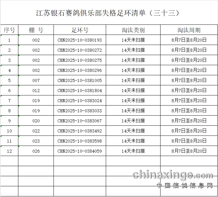 2025年江苏银石赛鸽俱乐部失格足环清单 (三十三)