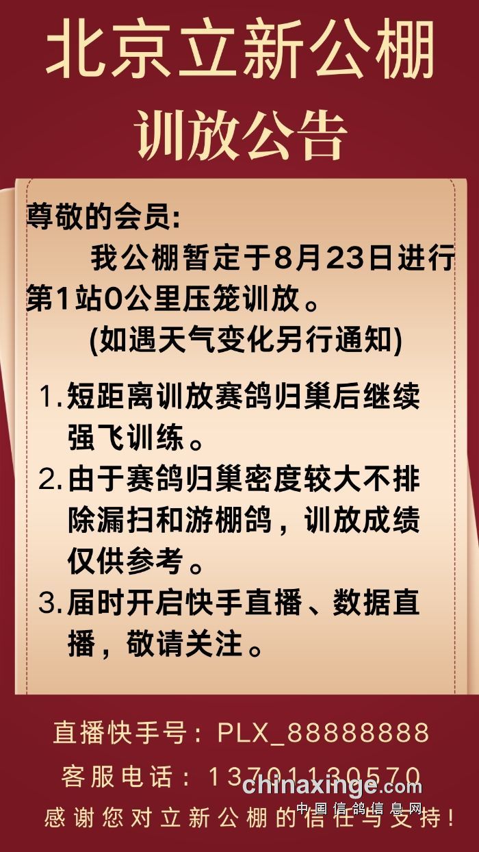 北京立新公棚第一站第一次0公里训放公告