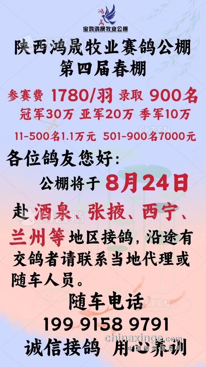 8月24日赴酒泉、张掖、西宁、兰州等地区接鸽公告