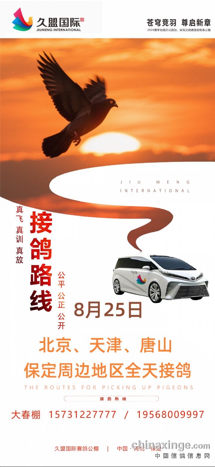河北久盟国际赛鸽公棚(春棚)8月25日接鸽路线