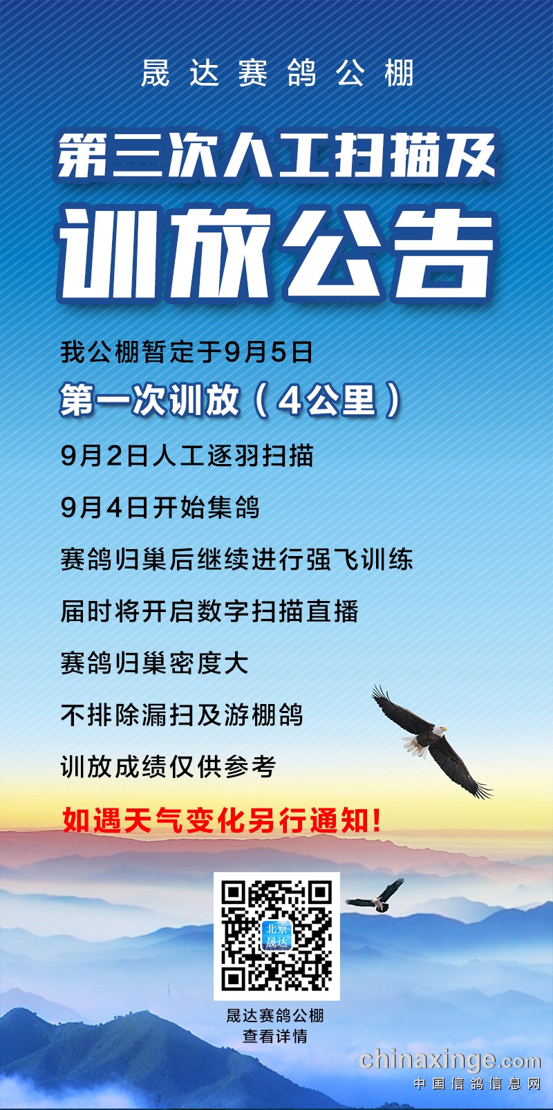 晟达赛鸽公棚——第三次人工扫描及训放公告
