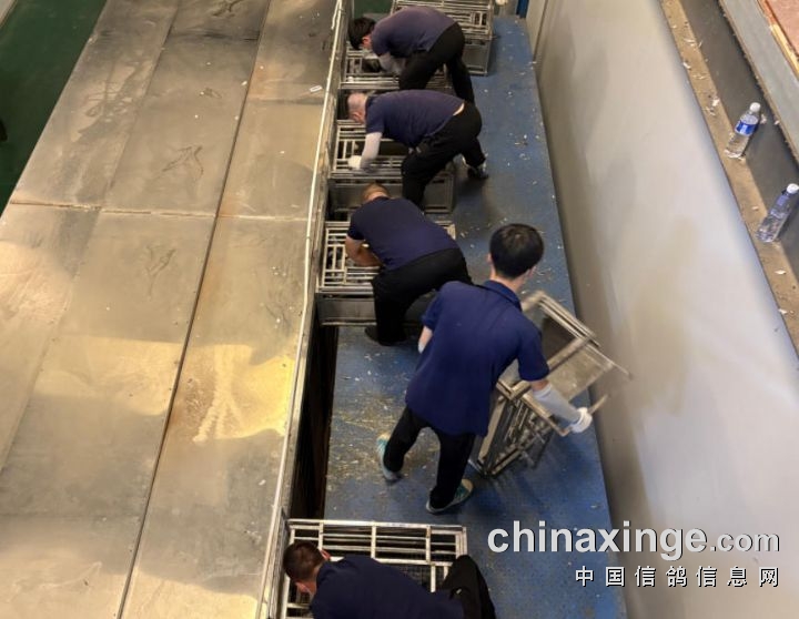 集鸽工作采用全新集鸽通道,保证集鸽的安全高效。集鸽全程工作人员各岗位井然有序,轻拿轻放,保证每一羽赛鸽的安全,集鸽完成后逐一对放飞笼进行检查。