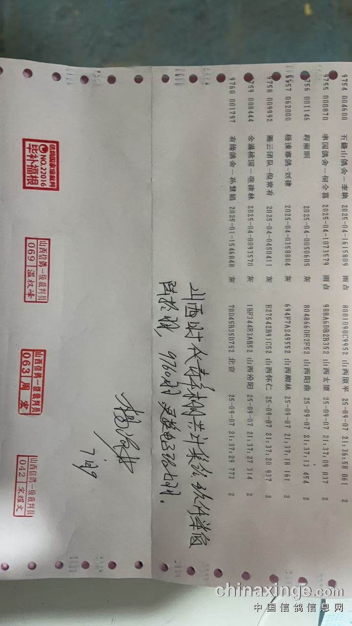 山西时代青年公棚2025年500公里决赛前800名获奖鸽经裁判组验证审核成绩真实有效