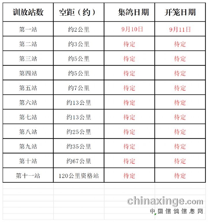 广东尔翔赛鸽公棚(秋棚)第四届定于2025年9月10日开始路训阶段,如天气稳定,训放时间按以下计划进行!