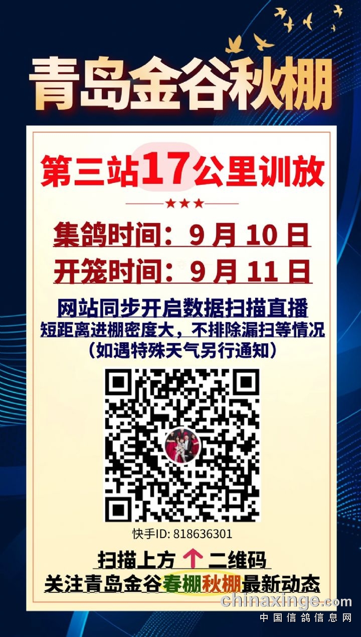 青岛金谷秋棚 第八届秋赛第二关开笼公告及扫描直播