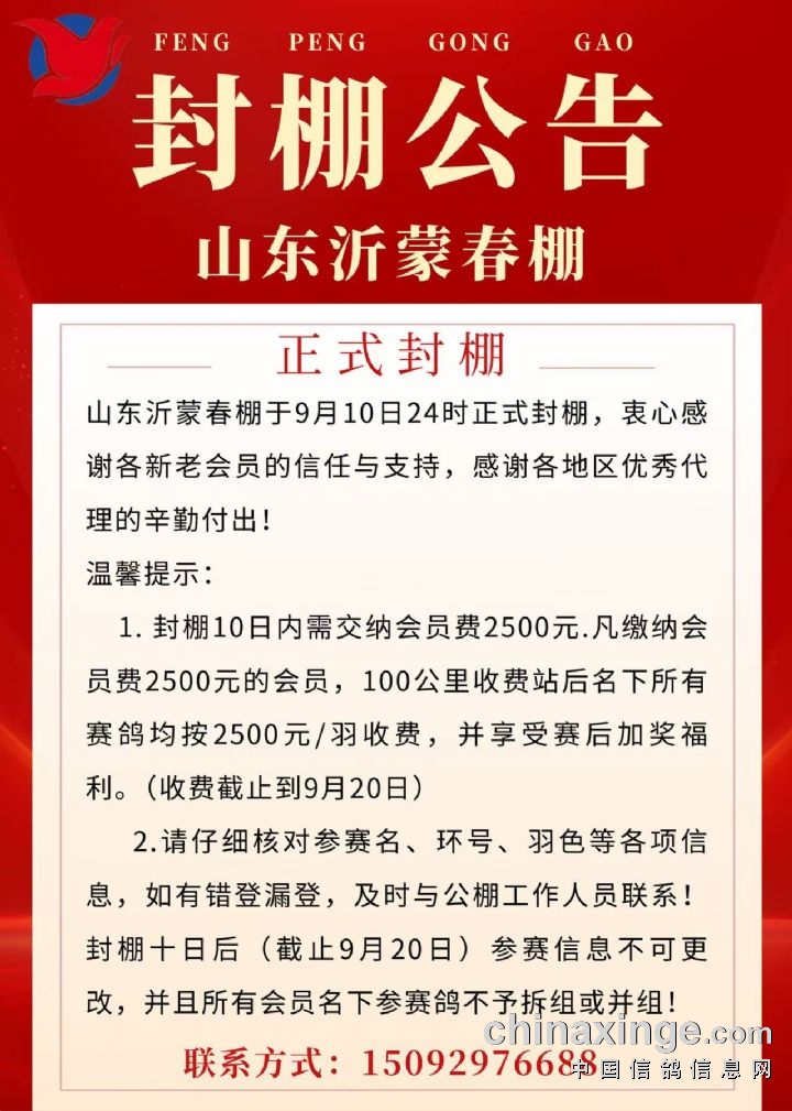 如需拆组并组的会员需在9月20日前与公棚联系,