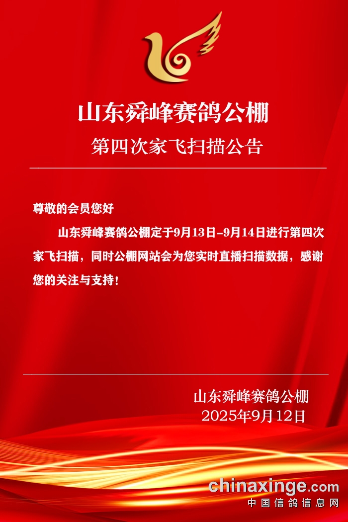 山东舜峰赛鸽公棚第四次家飞扫描公告