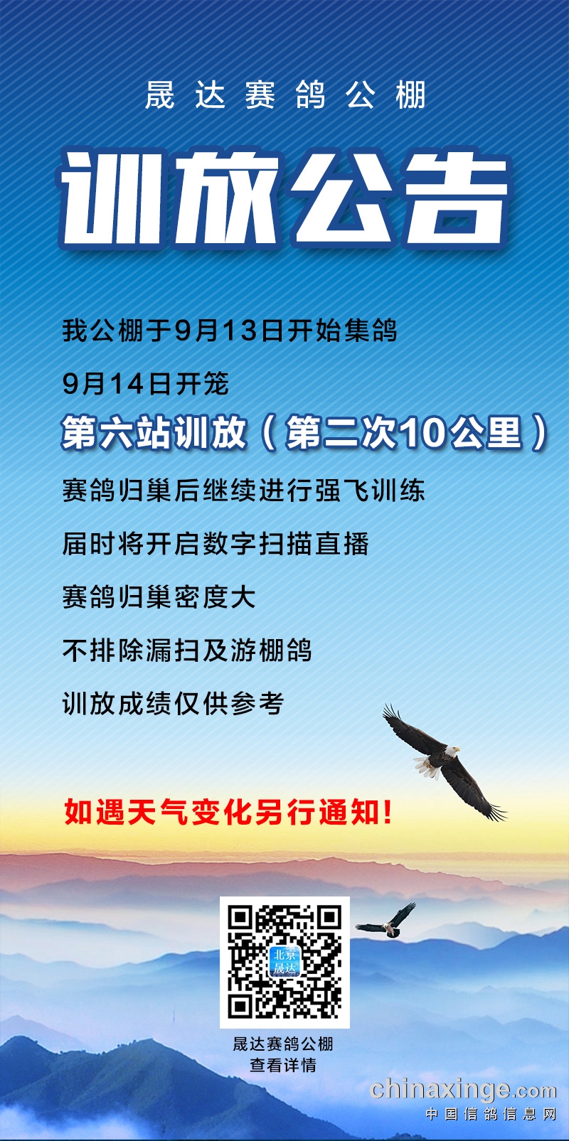 晟达赛鸽公棚——第六站训放(10公里)