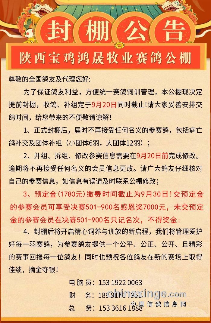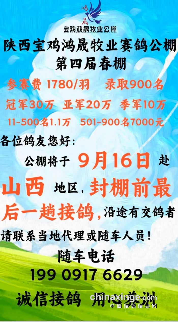 9月16日山西地区【封棚前最后一趟接鸽】公告