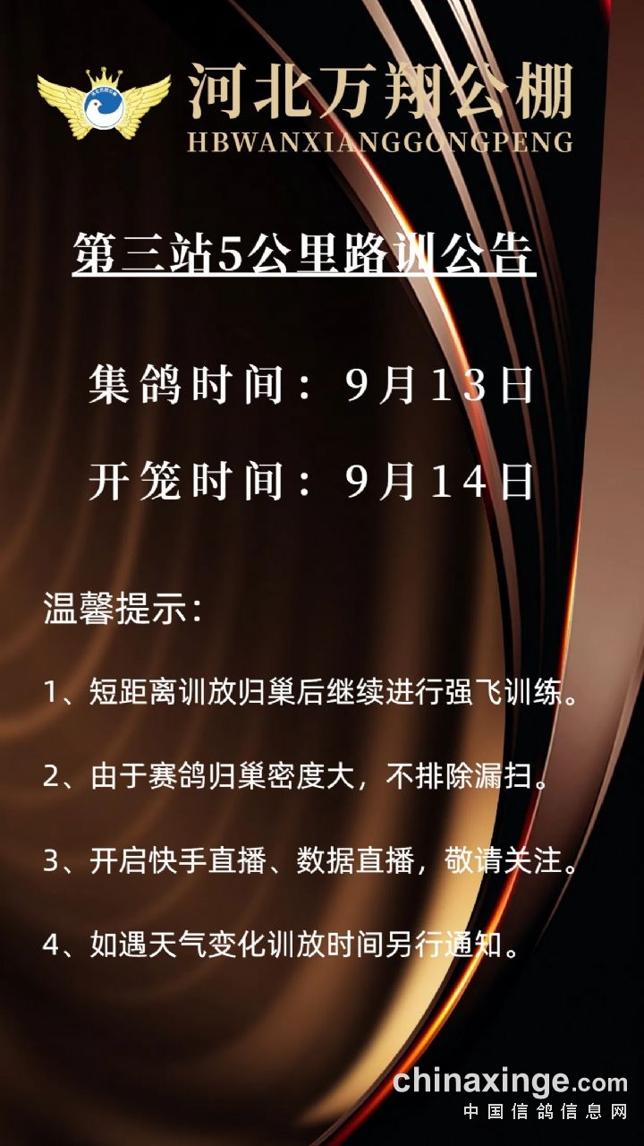 河北万翔公棚:180公里资格赛开笼公告及直播链接