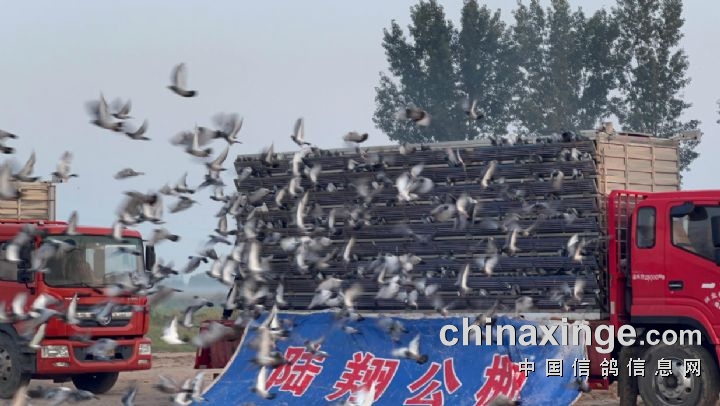 ●9月14日早6:33分,赛鸽准时开笼,短训期间采用逐车不间断开笼