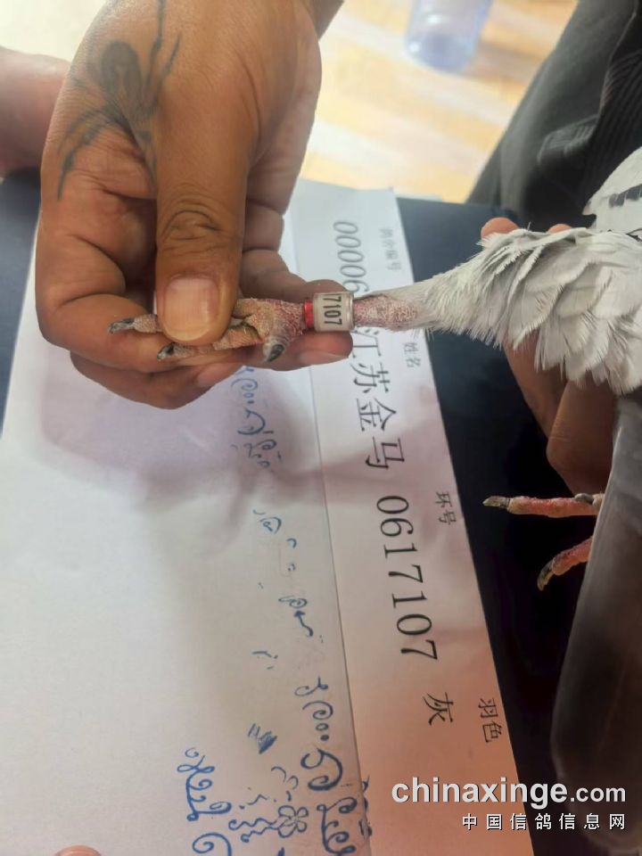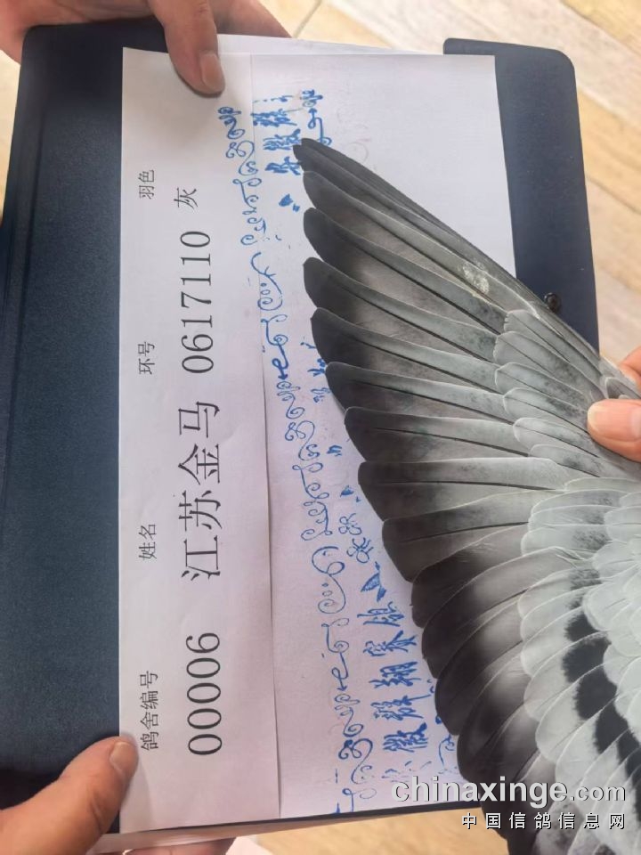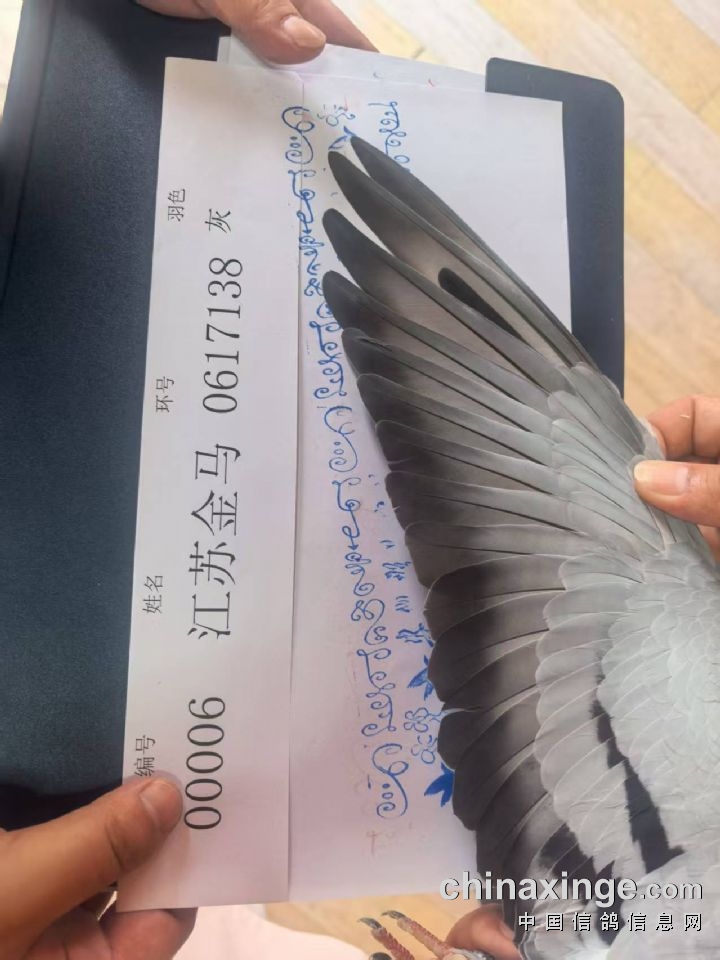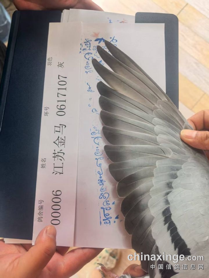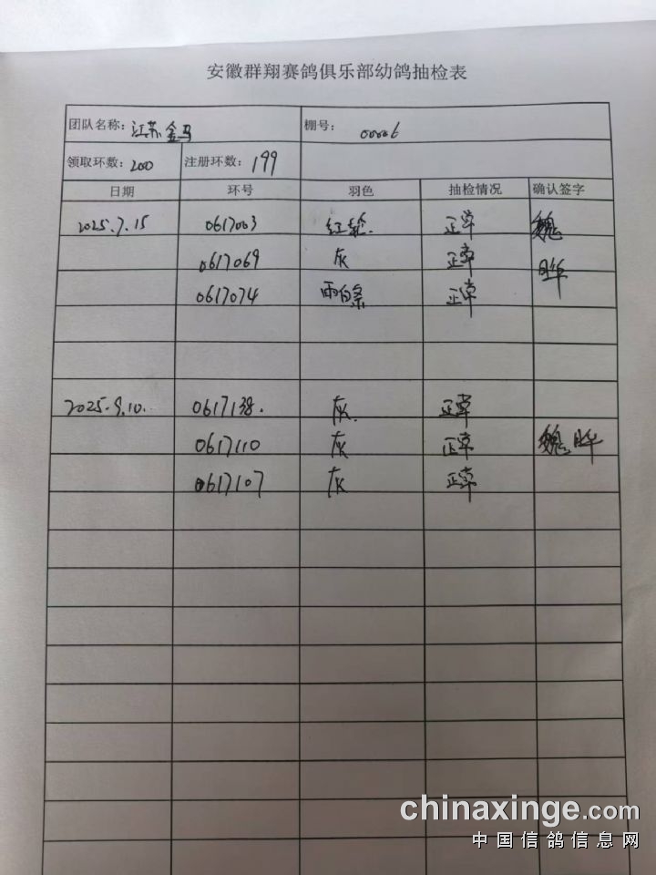 00006-江苏金马,拿环200枚,已注册200羽。今日抽检3羽,均合格。