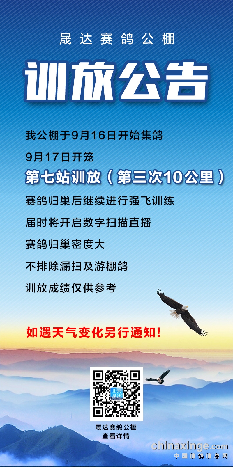 晟达赛鸽公棚——第七次训放公告(10公里)
