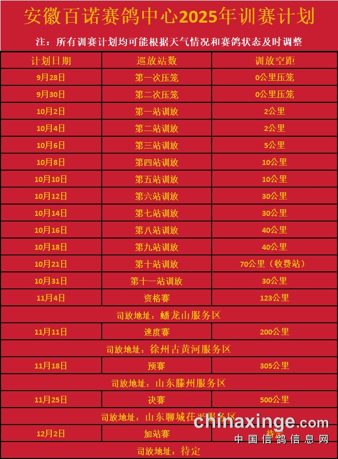 安徽百诺赛鸽中心接鸽3月29日-4月5日路线安排