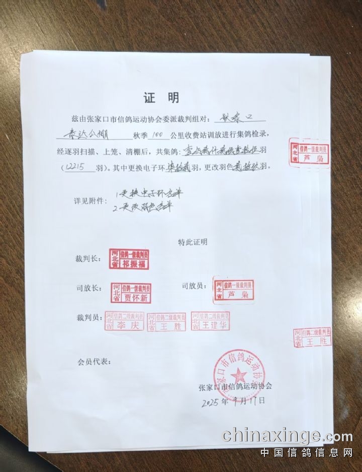 河北泰达公棚180公里速度赛三日归巢数据(按名次)