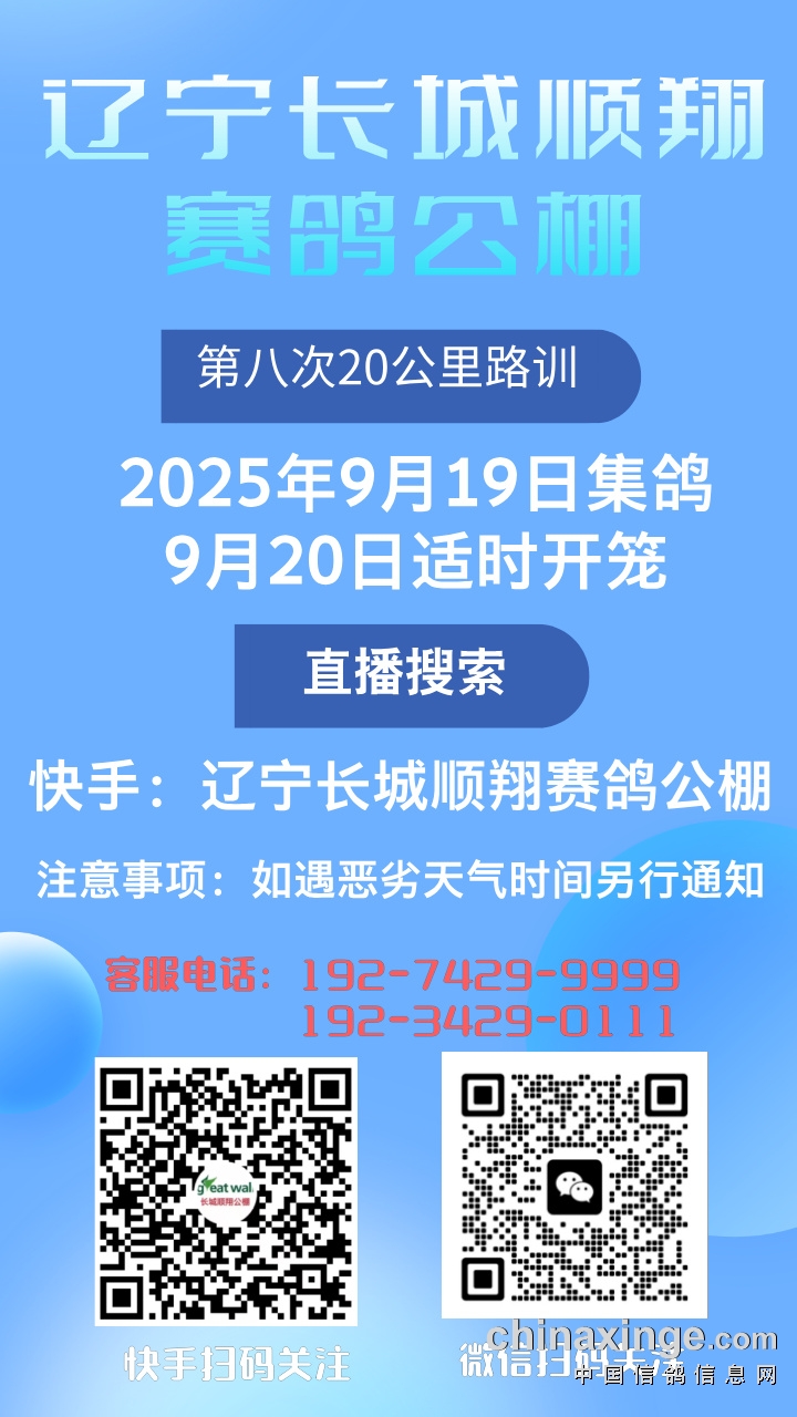 辽宁长城顺翔赛鸽公棚第八次20公里路训通知