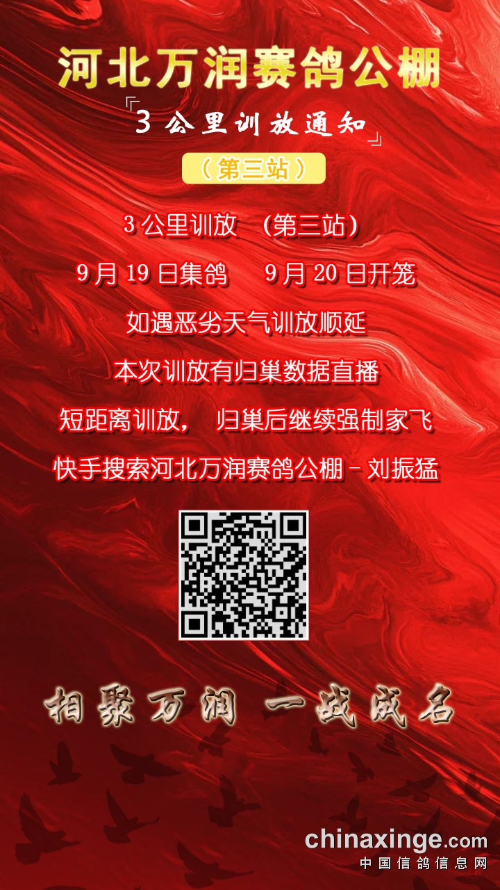 • 河北万润公棚50公里训放通知(第十三站) (2025-10-23 17:03:00)