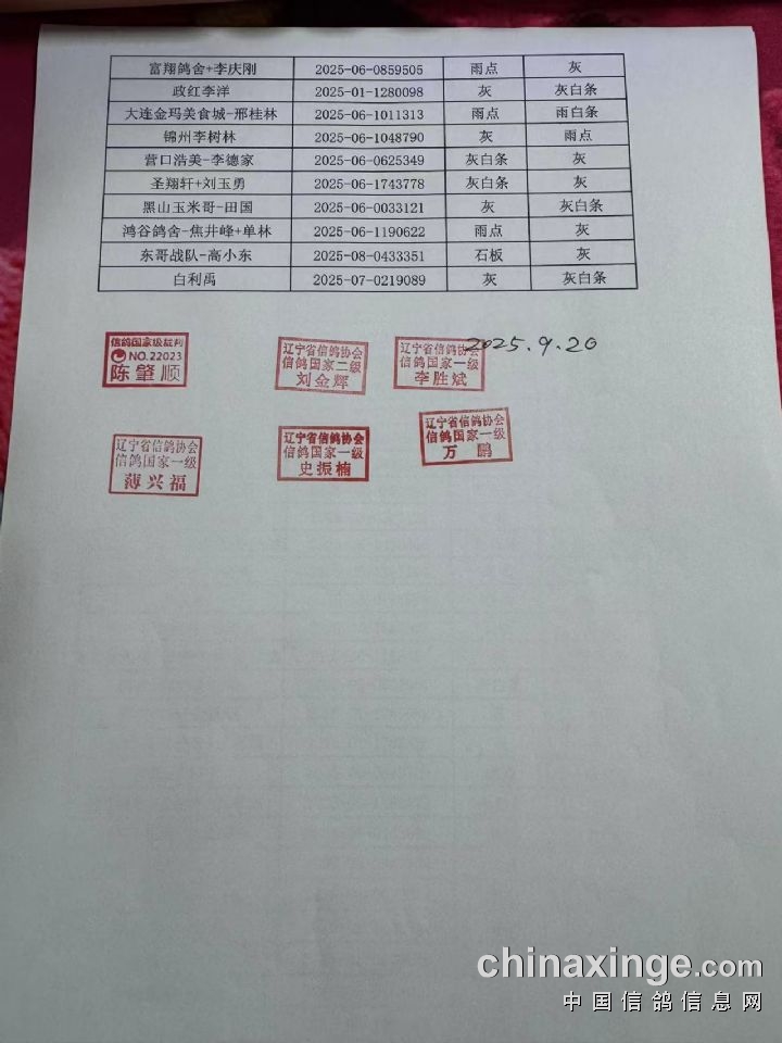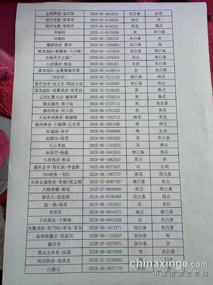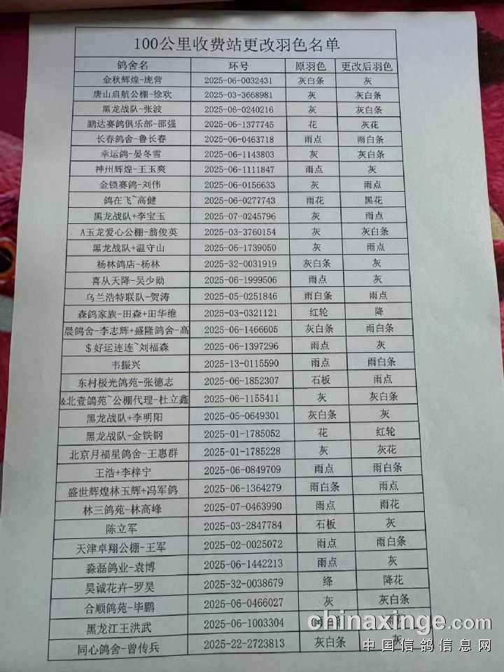 辽宁福兴阳光公棚100公里收费站更改羽色名单