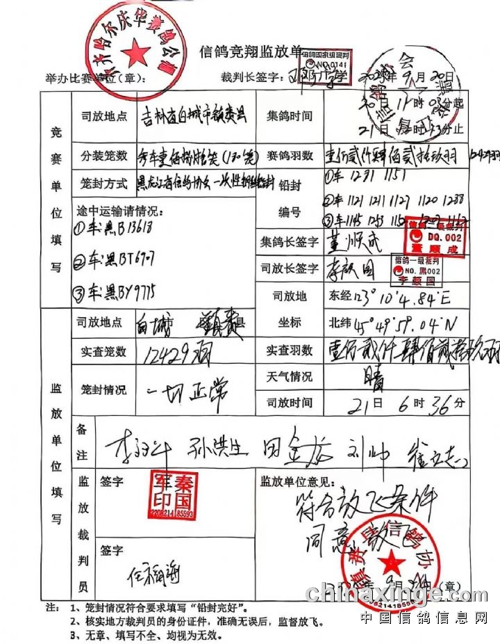 齐齐哈尔庆华公棚160公里信鸽协会监放单