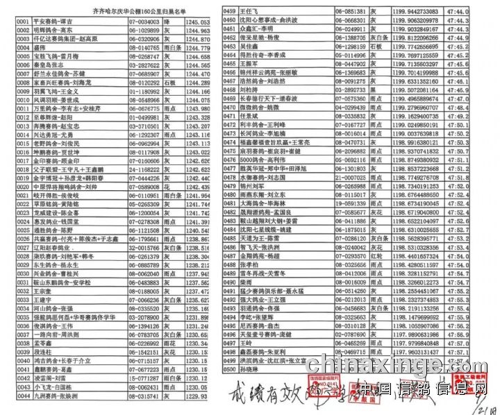 齐齐哈尔庆华公棚540公里集鸽更换电子环名单