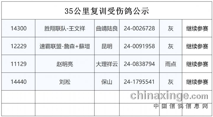 2025达人赛鸽中心:35公里复训受伤鸽公示