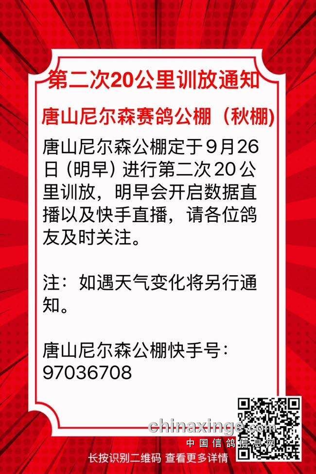 唐山尼尔森公棚500公里决赛更改羽色及更换电子环名单