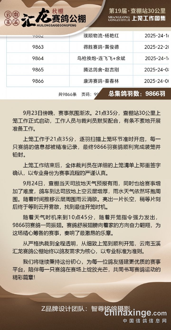 汇龙秋棚:2025年集鸽代理人费用领取通知