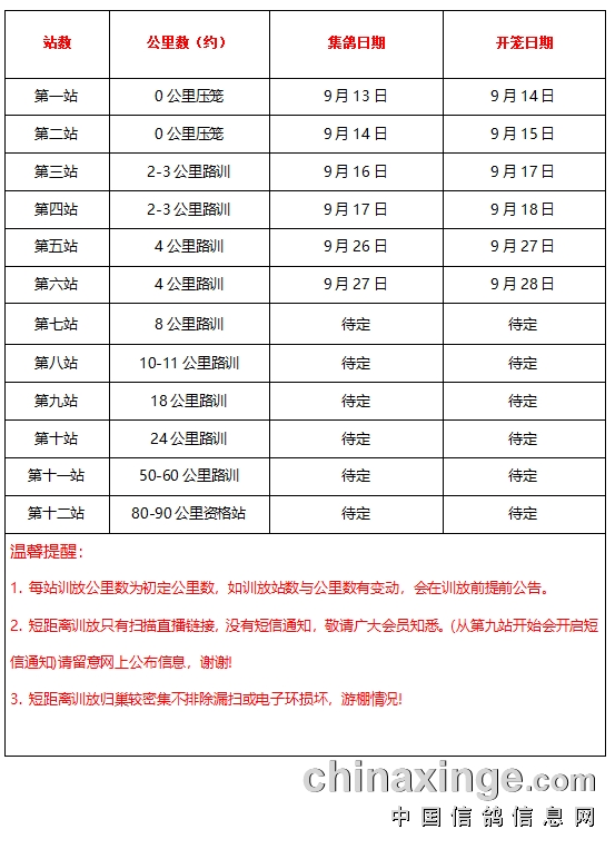 大家好!广东新时代宝玛(秋棚)第六站4公里训放定于9月27日晚集鸽,28日早上开笼!(如遇恶劣天气则改期另行通知!)