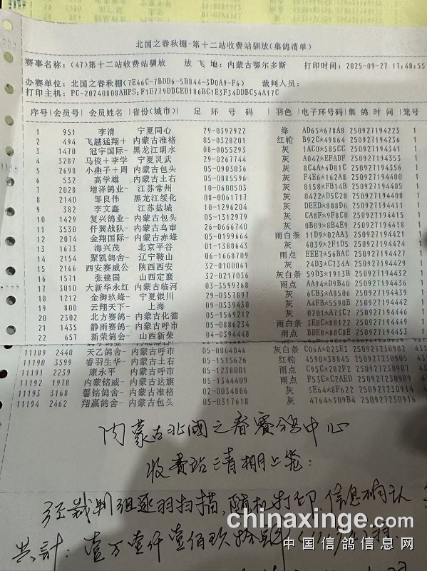 提示:如果此页面是训放清单,要想快速查询鸽环号,请按