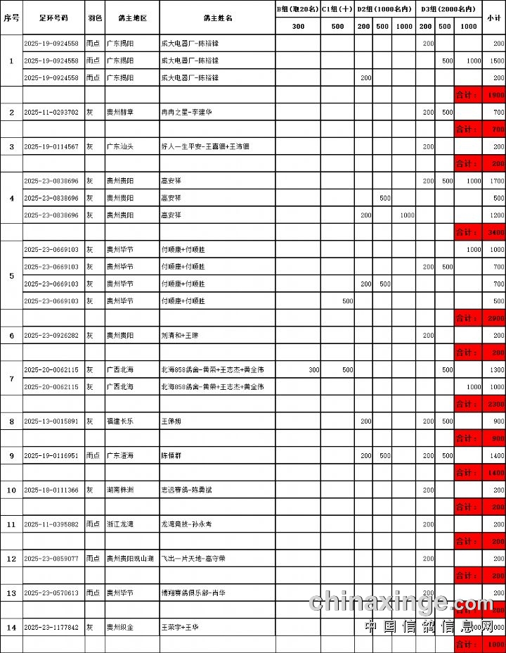 提示:如果此页面是训放清单,要想快速查询鸽环号,请按
