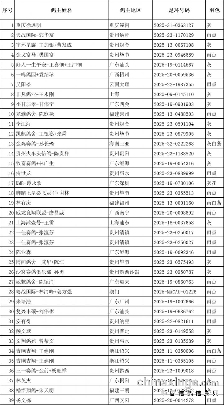 贵州将军公棚:2025年秋赛第一关精英赛未上笼清单