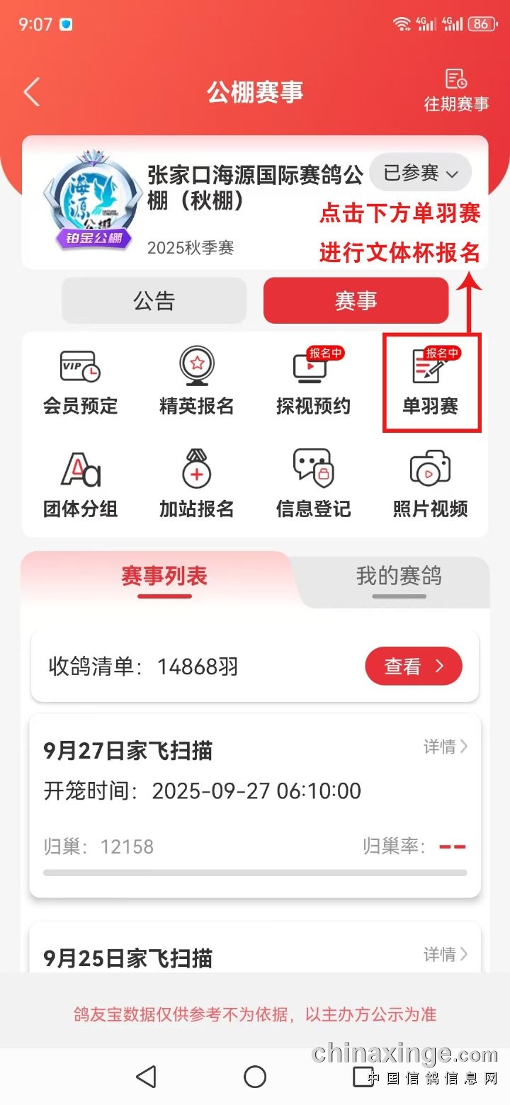以此项参赛鸽报名为依据,按关赛500名内(含500名),先后依次录取,得平均奖金。