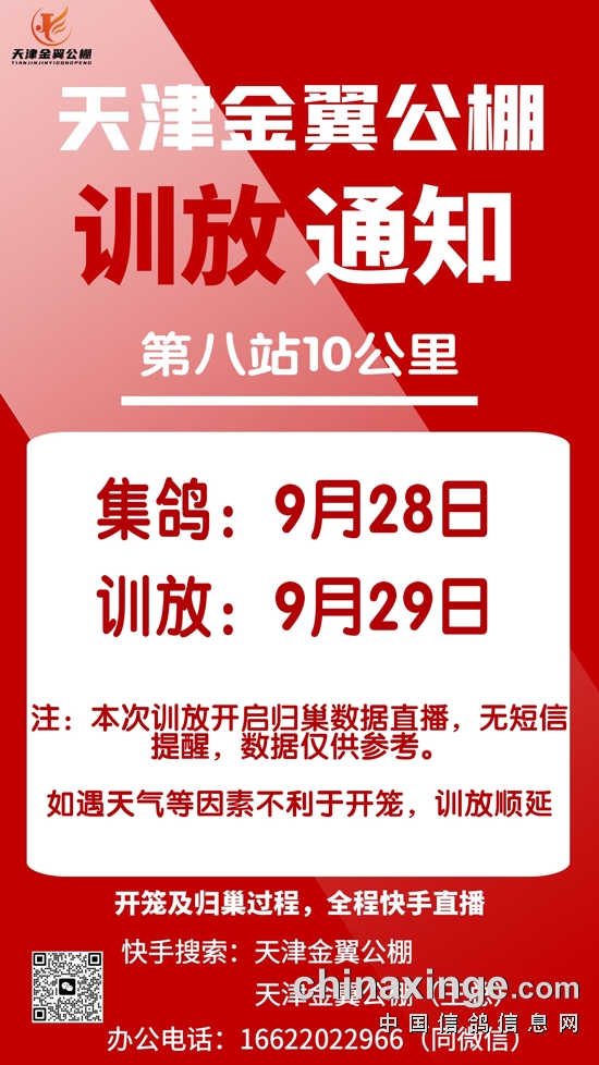天津金翼公棚第九站10公里训放通知