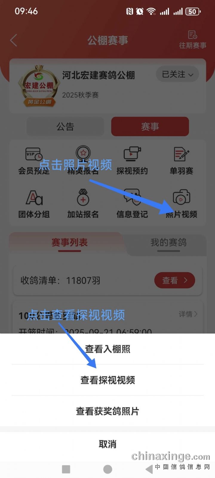 我公棚探视视频已拍摄完毕,因中信网屏蔽,参赛会员可在我公棚办公微信朋友圈查看探视二维码,也可直接登录软件,输入公棚预留手机号即可查看视频。