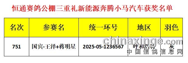 恒通赛鸽公棚三重礼新能源奔腾小马汽车获奖名单