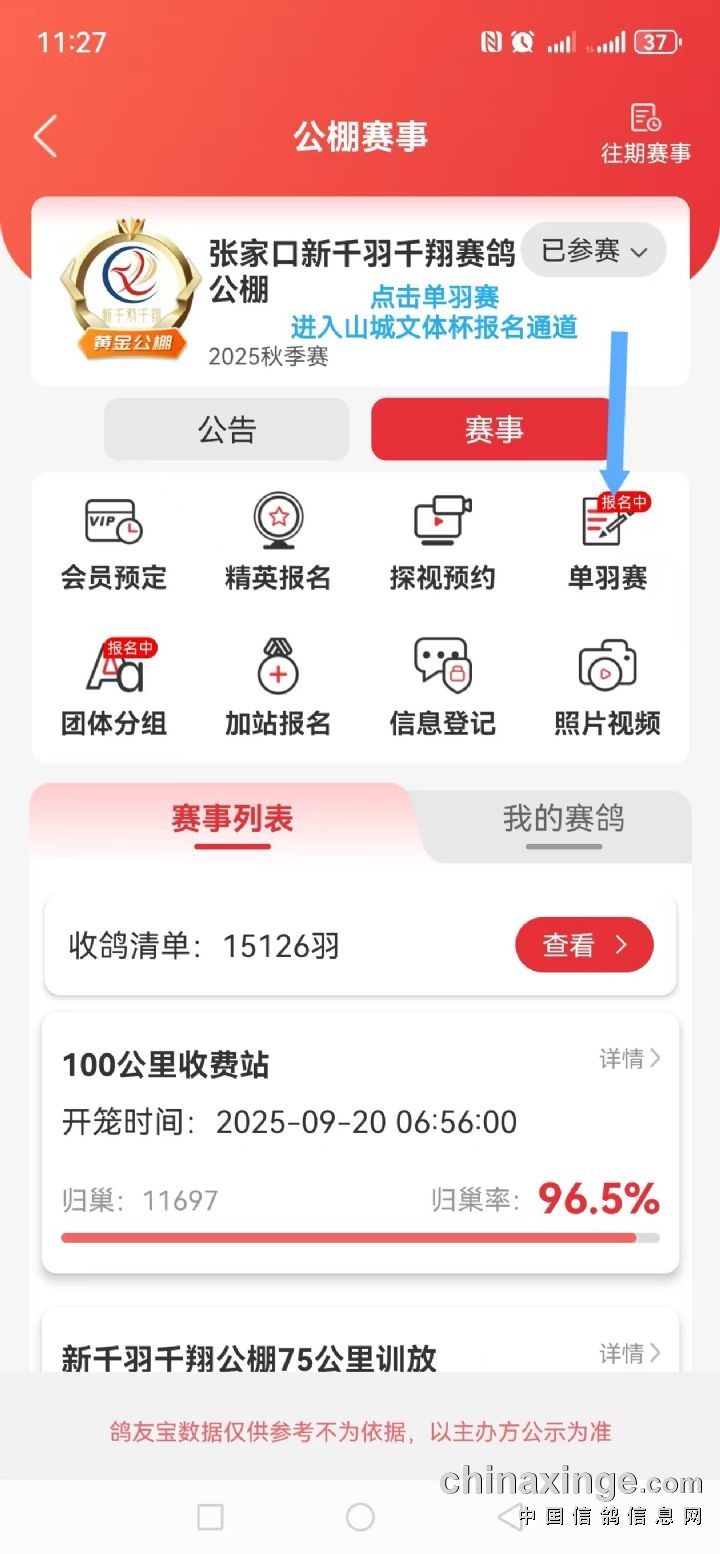 以此项参赛鸽报名为依据,按名次先后依次录取,末奖