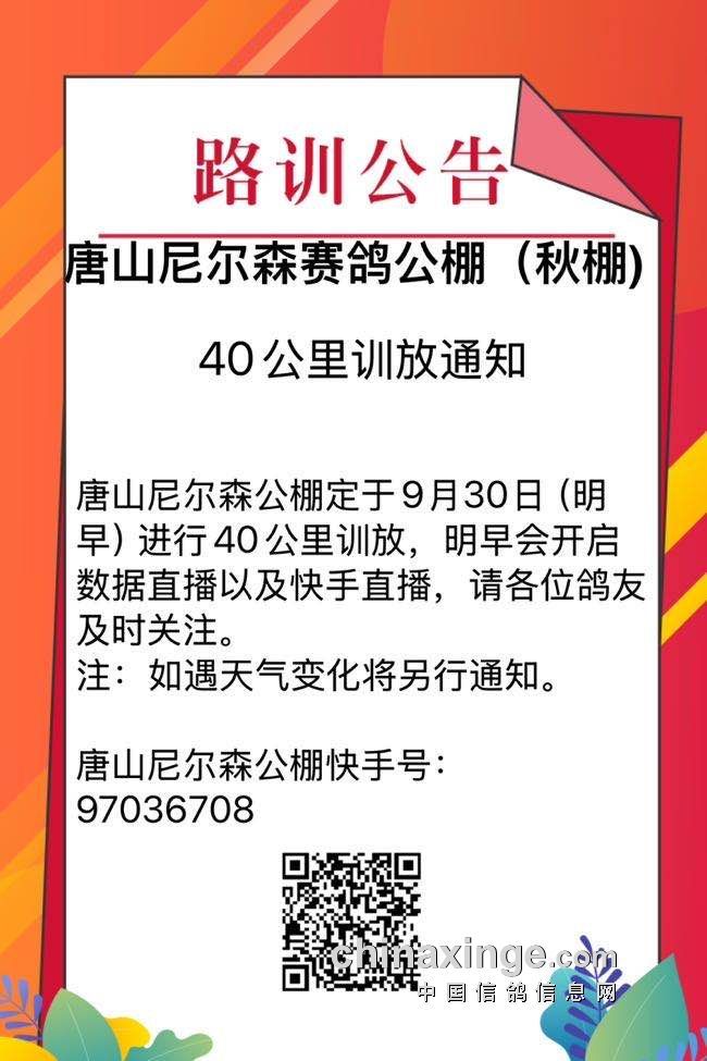 唐山尼尔森公棚500公里决赛更改羽色及更换电子环名单