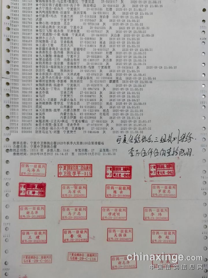 • 宁夏中卫赛鸽公棚520公里第三关大团体获奖名单 (2025-11-20 17:07:07)