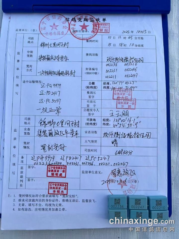 神州辉煌2号棚100公里收费站将进行人工逐羽唱号扫描、随机打印,并由辽宁省信鸽协会裁判组亲临现场监督此次集鸽、装笼、开笼、归巢全过程,同时我们将委托媒体对此次训放进行全程网络视频直播,并开启归巢短信通知服务。