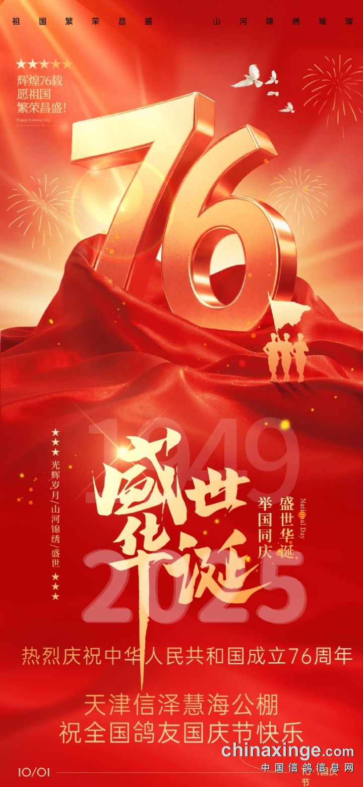 天津信泽慧海公棚祝全国鸽友国庆节快乐!