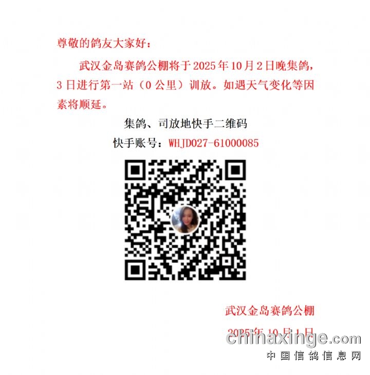 武汉金岛赛鸽公棚第一站0公里训放公告