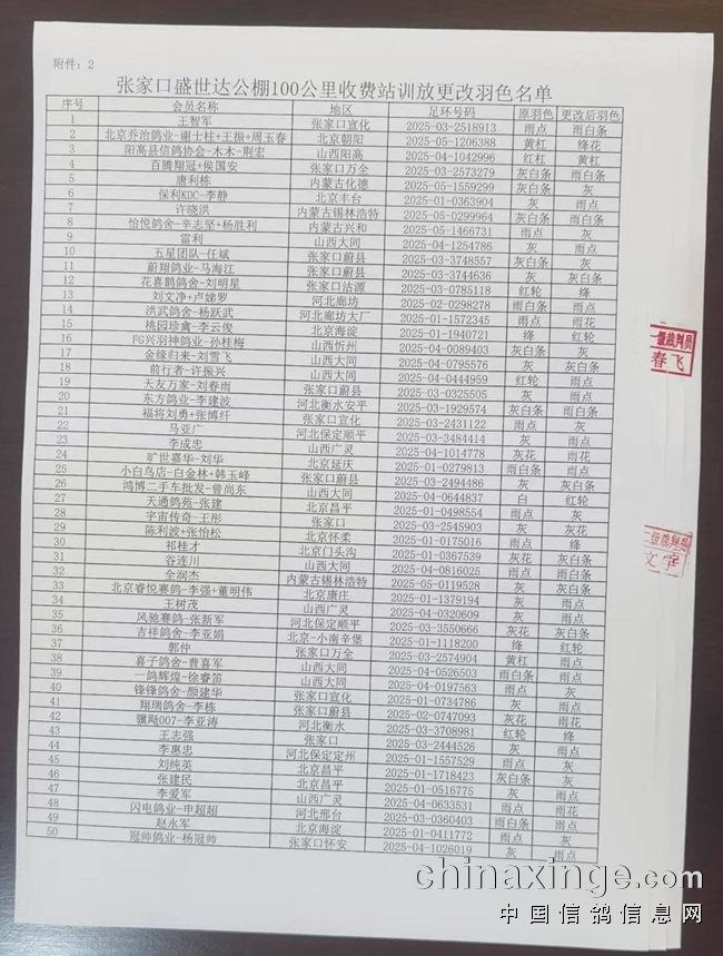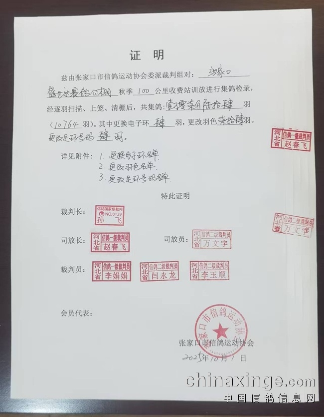 张家口盛世达公棚500公里决赛前900名获奖名单证明