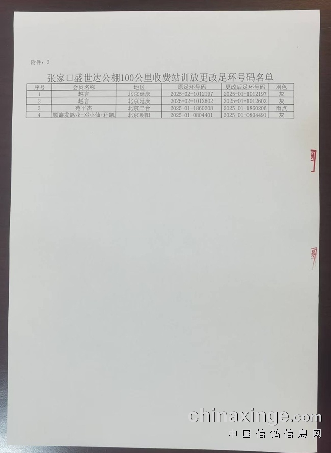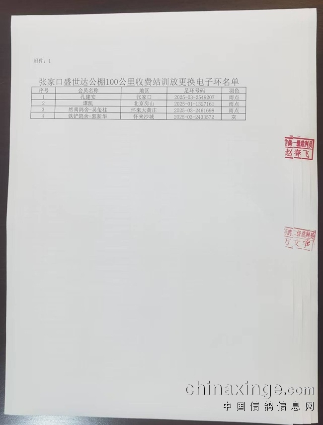 张家口盛世达公棚100公里收费站训放(集鸽证明)